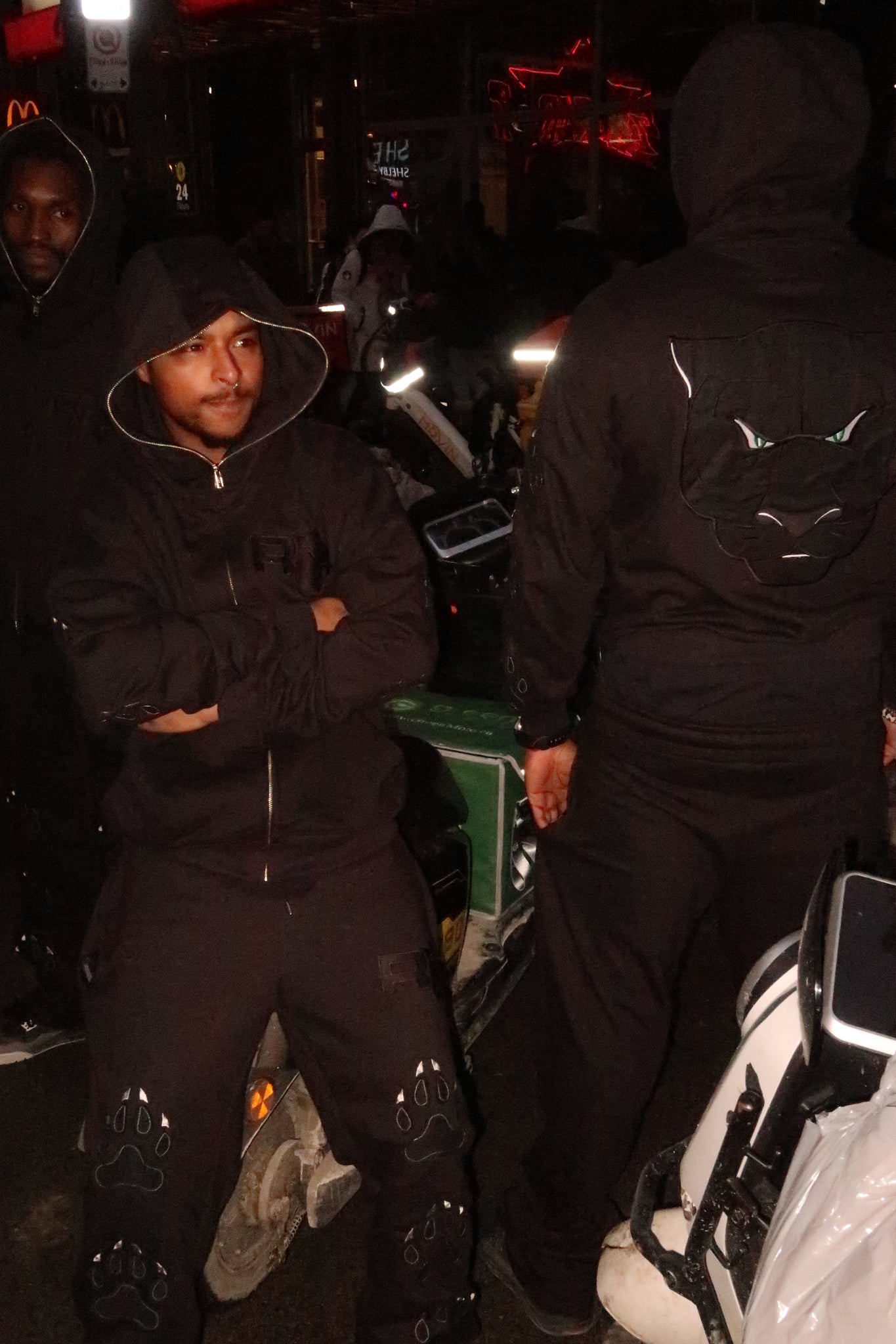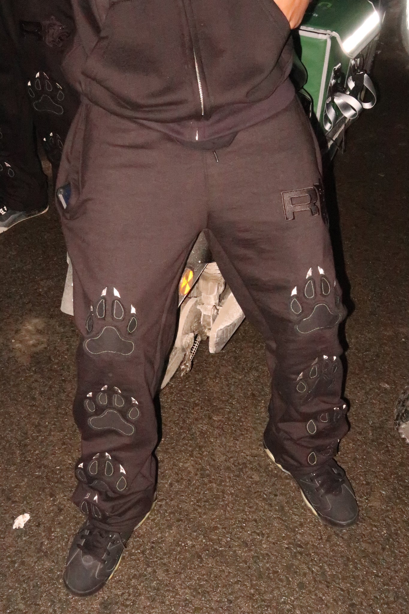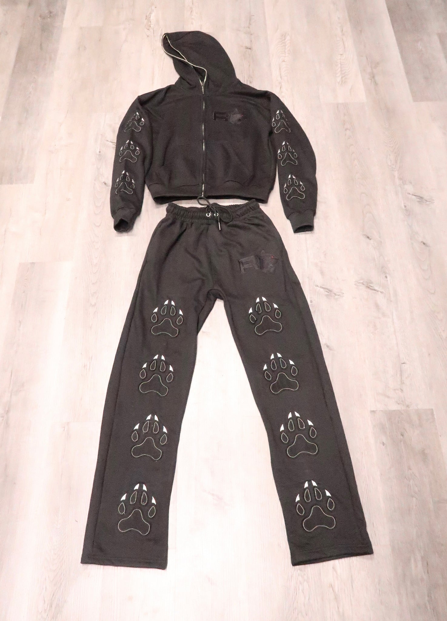 Embroidered Triple Black Panther Paw stitched patches on Left an Right Sleeves of Hoodie and Pant